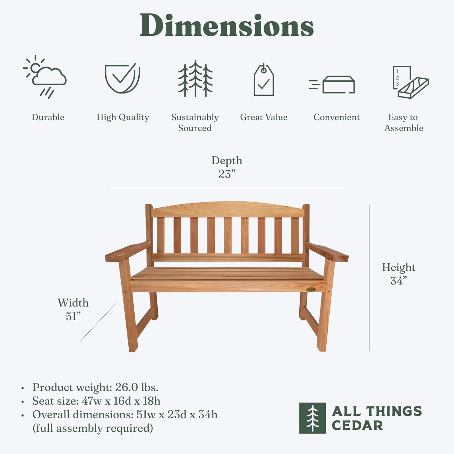 Introducing the All Things Cedar GB48 Cedar Garden Bench Wood - the epitome of outdoor seating luxury and comfort. Crafted with untreated Western Red Cedar wood, this bench boasts exceptional durability, ensuring it holds up beautifully in any outdoor setting, whether on your patio, deck, or nestled in your garden oasis.